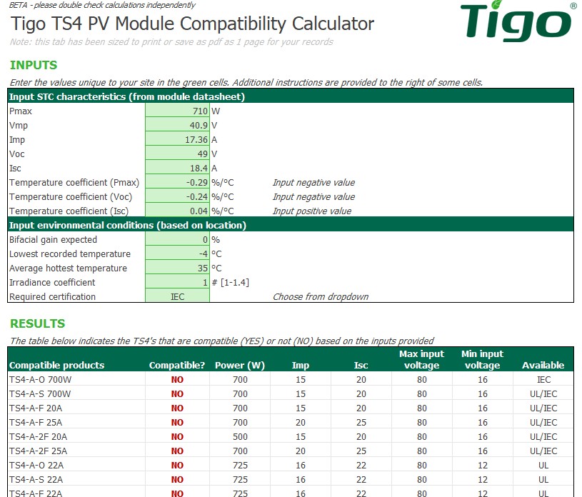 Calculator: Tigo TS4 and PV Module Compatibility Calculator