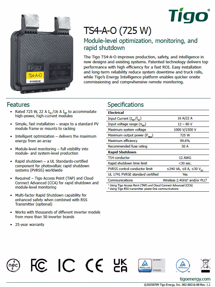 Datasheet: Tigo TS4-A-O 725W