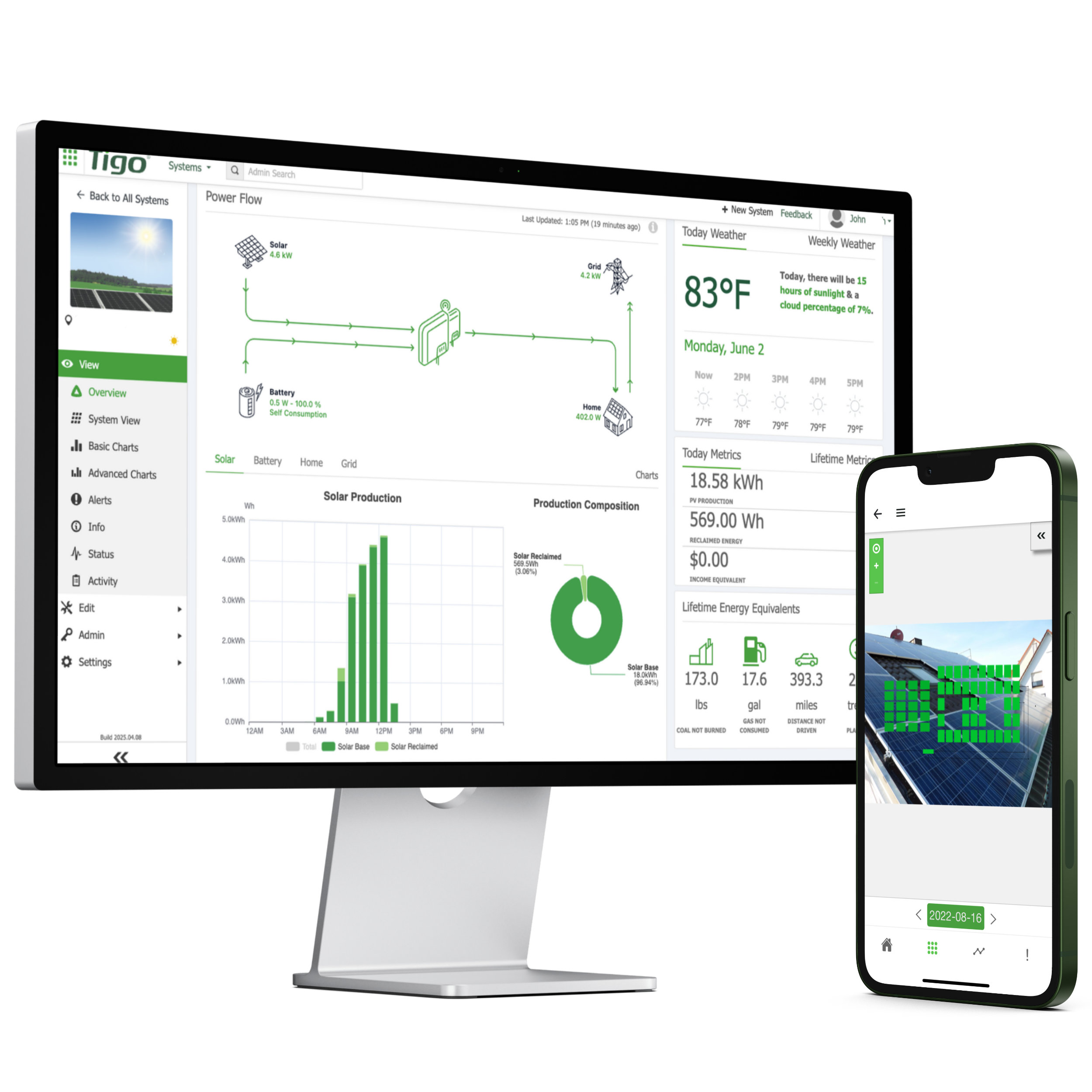 Track your home’s solar and battery performance with the Tigo Energy Intelligence app—see your savings, monitor your system, and enjoy peace of mind with module-level safety.